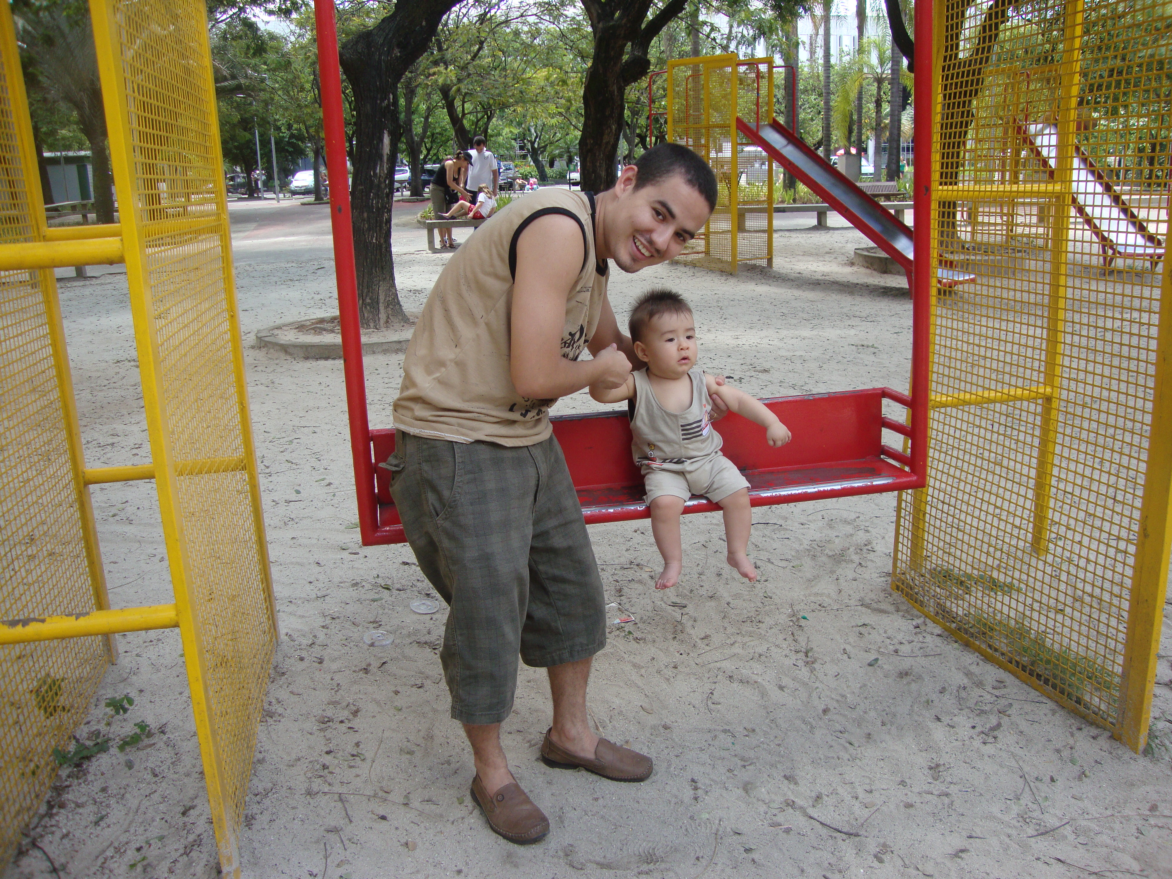 Primeira vez no balanço, observando as outras crianças mais velhas.